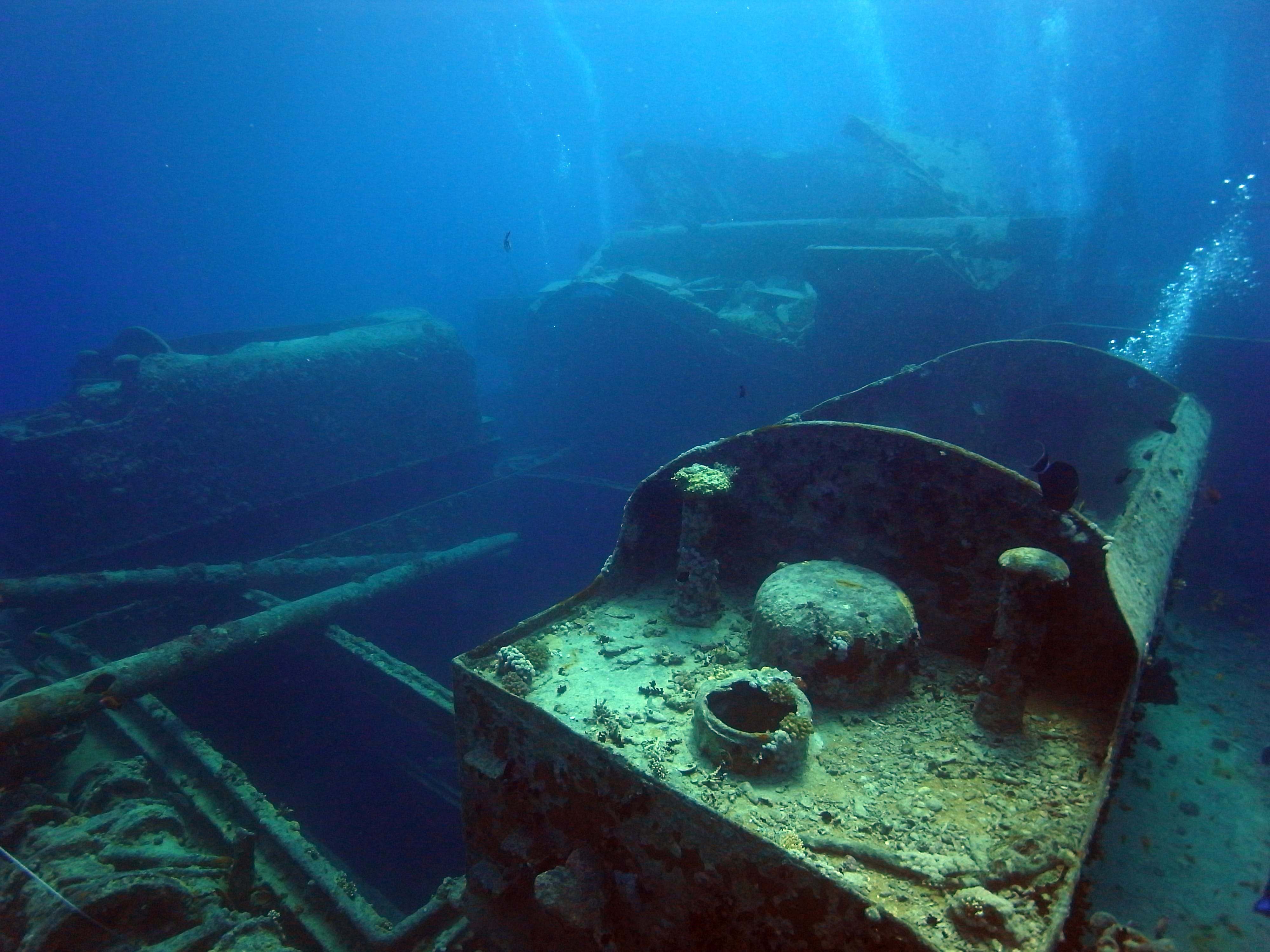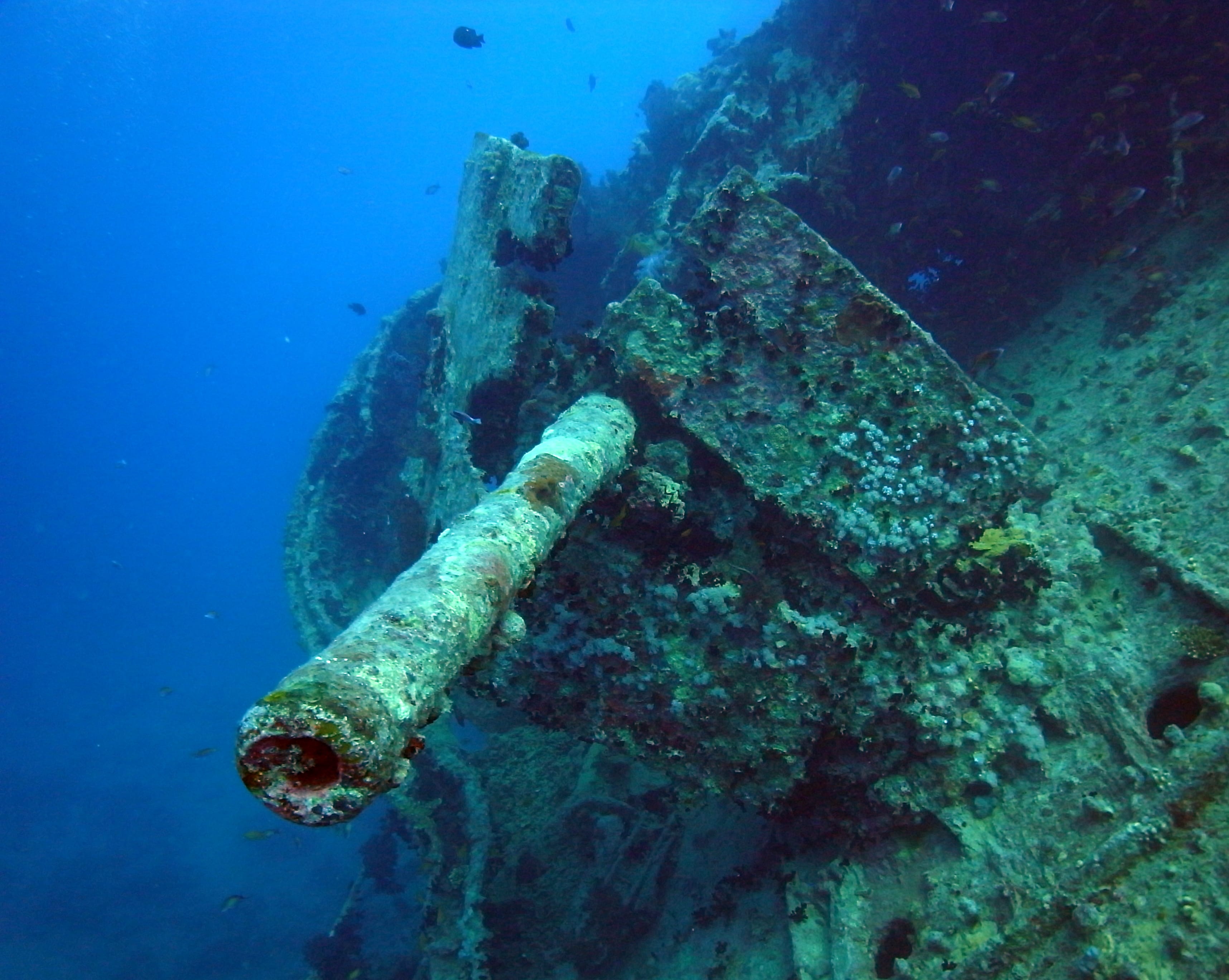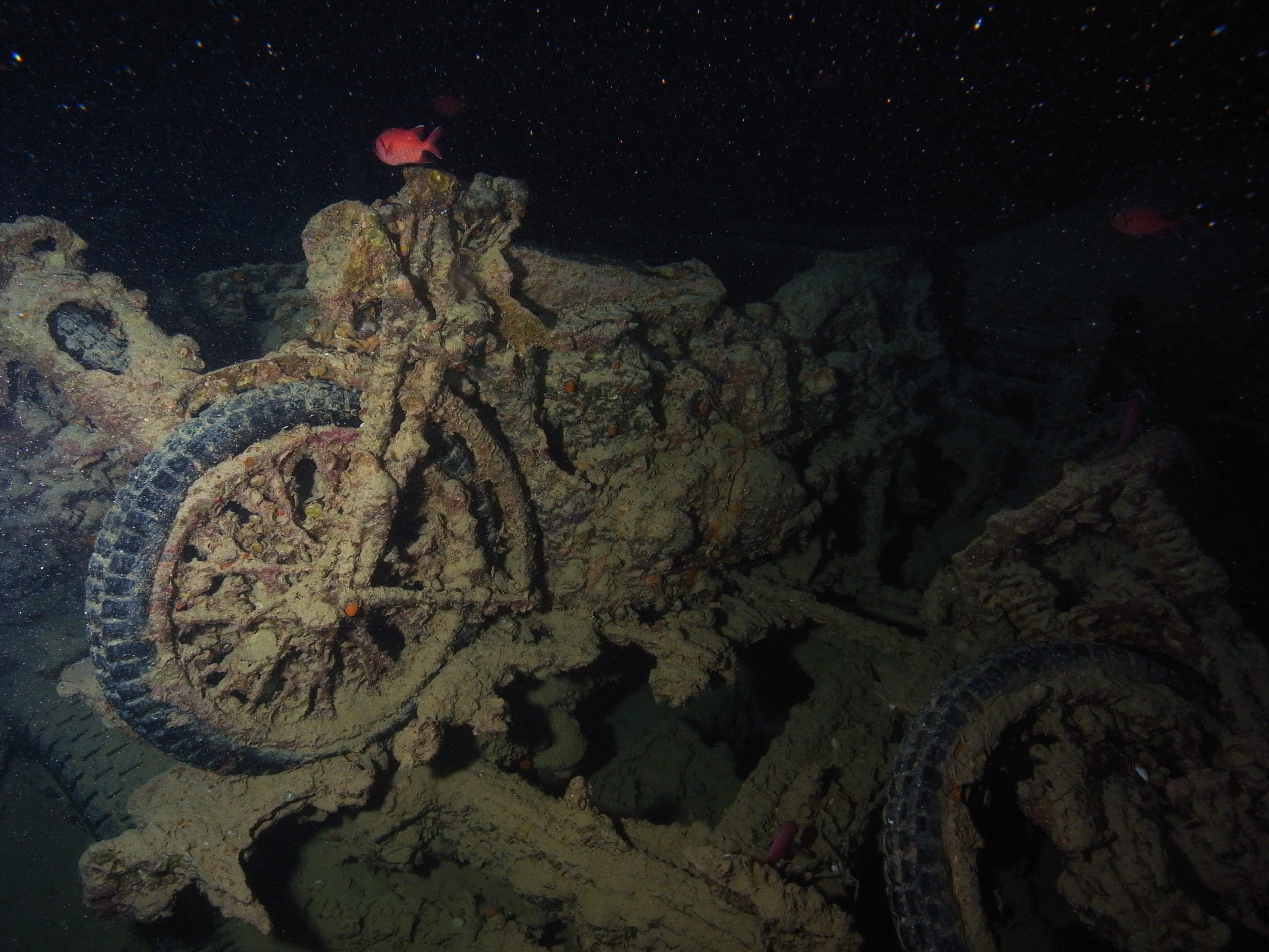 Exploring the wreck feels like diving into history. Inside the cargo holds, you can see motorcycles, trucks, and wartime supplies that have remained on the ship since it sank during World War II. Coral and marine life have transformed the wreck into a thriving underwater habitat, making the dive both historically fascinating and visually stunning.